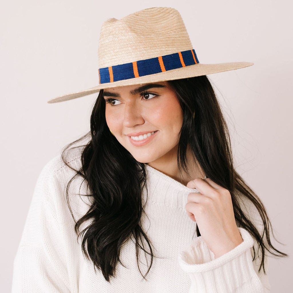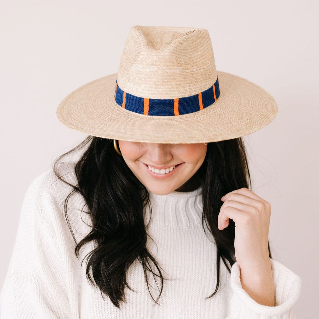 Our Blue and Orange Palm Hat is tailgate-ready and stadium-approved—perfect for shielding the sun while you cheer on your team in style. With bold, team-inspired colors and a silhouette that turns heads, they bring the perfect mix of cute and spirited to any Saturday kickoff.