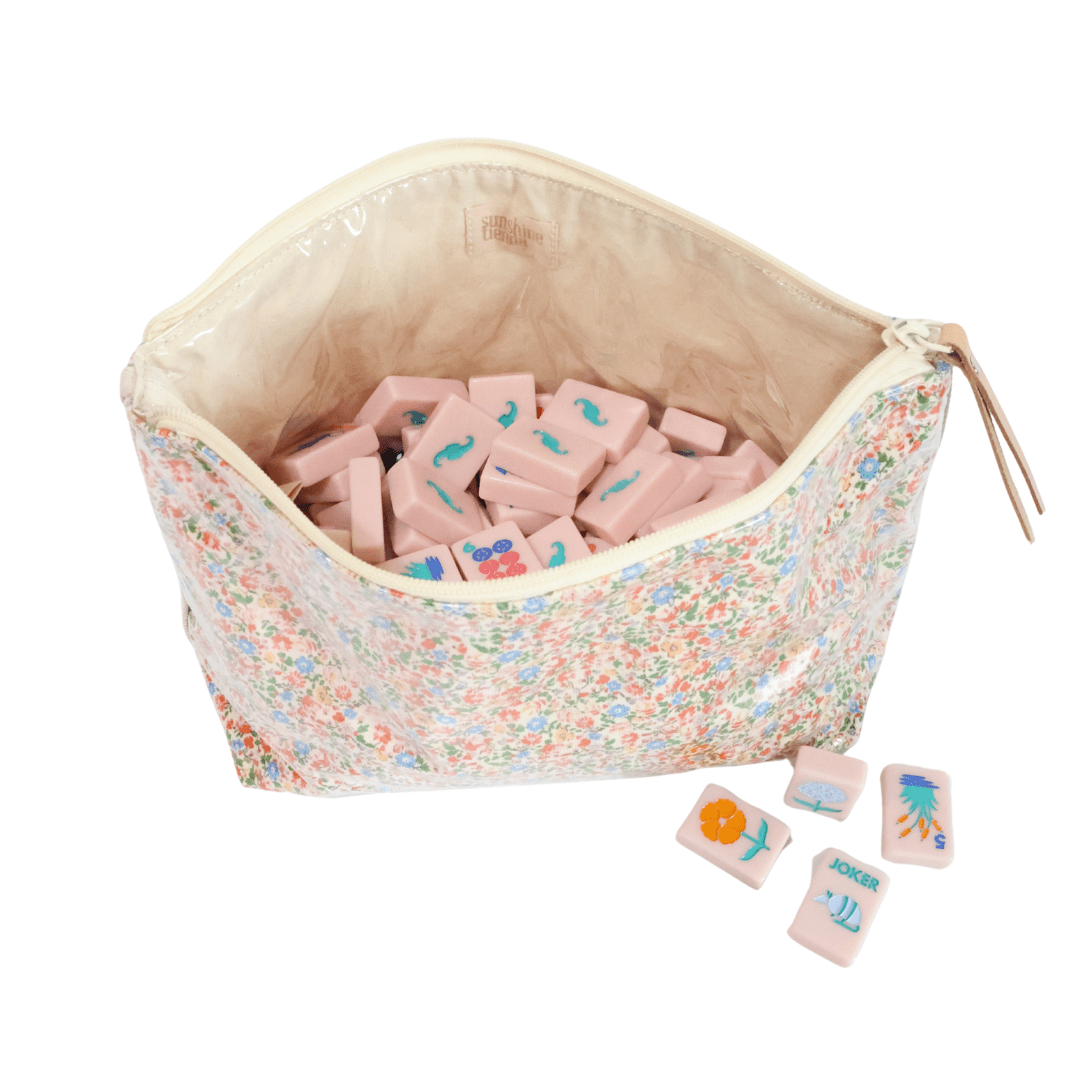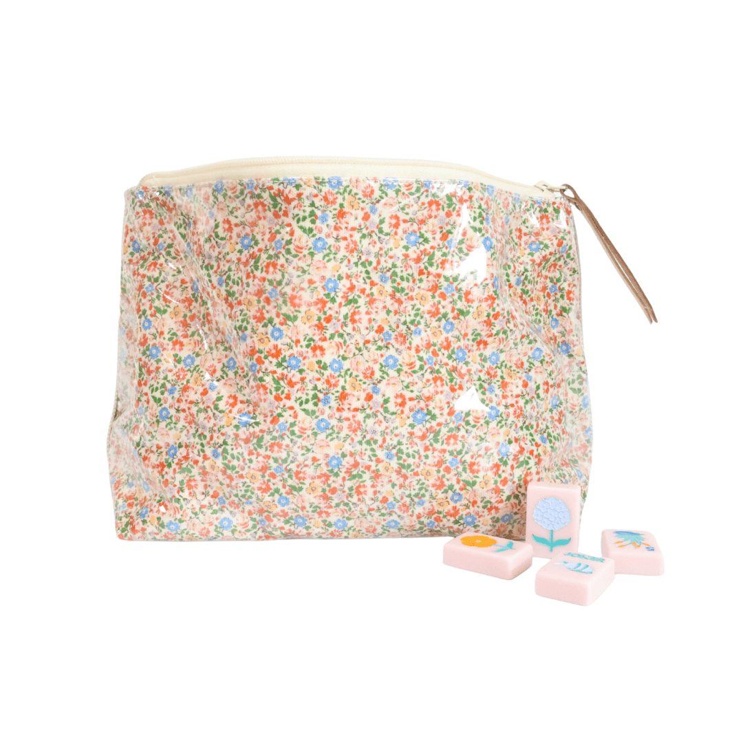 The Floral Clear Coated Travel Pouch is a classic way to store your essentials from mahjong tiles to makeup. Featuring a classic floral ditsy print, this compact pouch is crafted from durable canvas with a vinyl finish, making it perfect for travel or everyday use. Keep your items organized and stylish on the go!