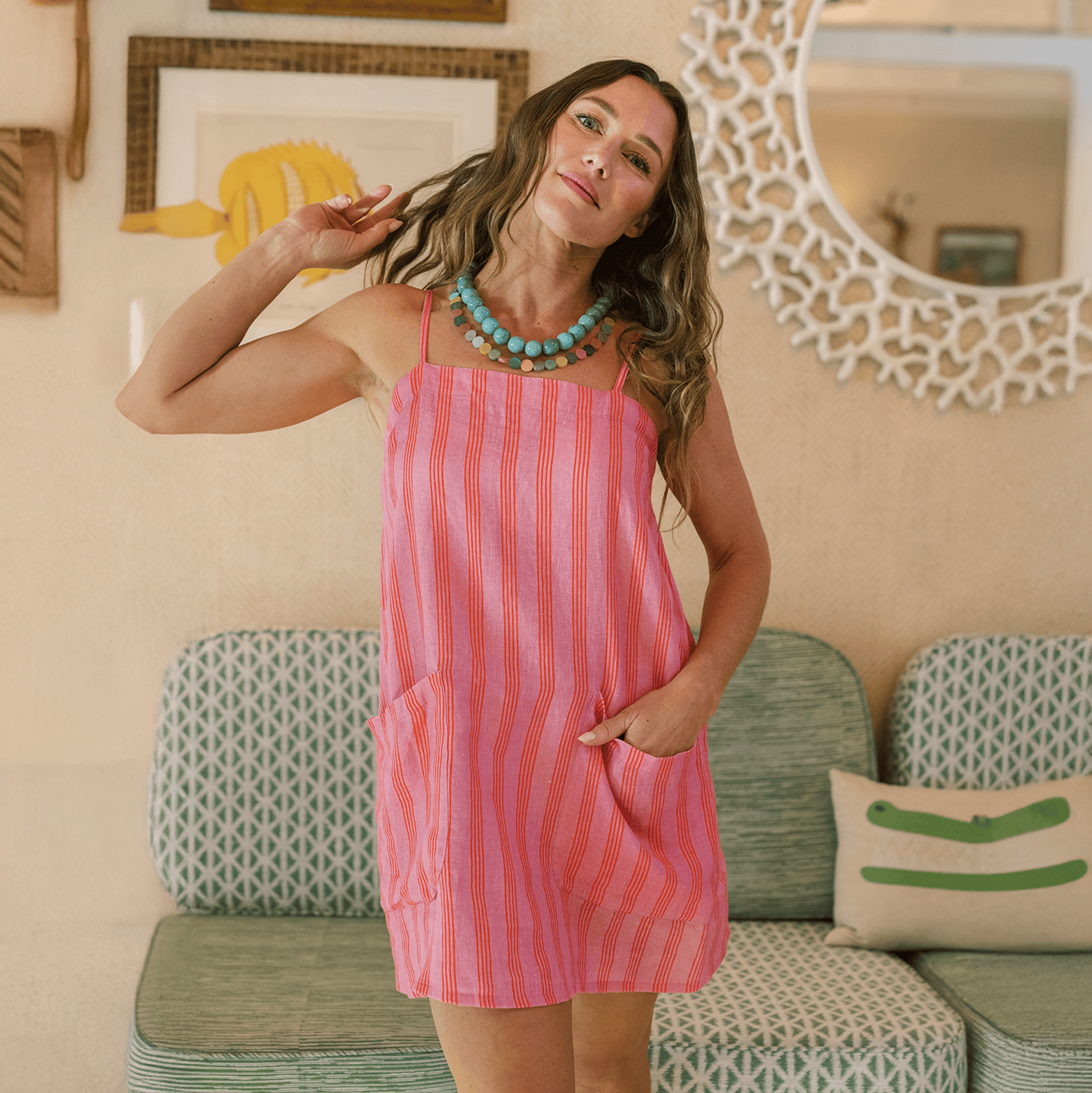 The Grotto Dress is back—this easy mini is a sunshine staple, complete with front patch pockets, adjustable straps, and a relaxed fit that keeps things cool and carefree. Throw it on over a swimsuit or style it with sandals for all-day wear.