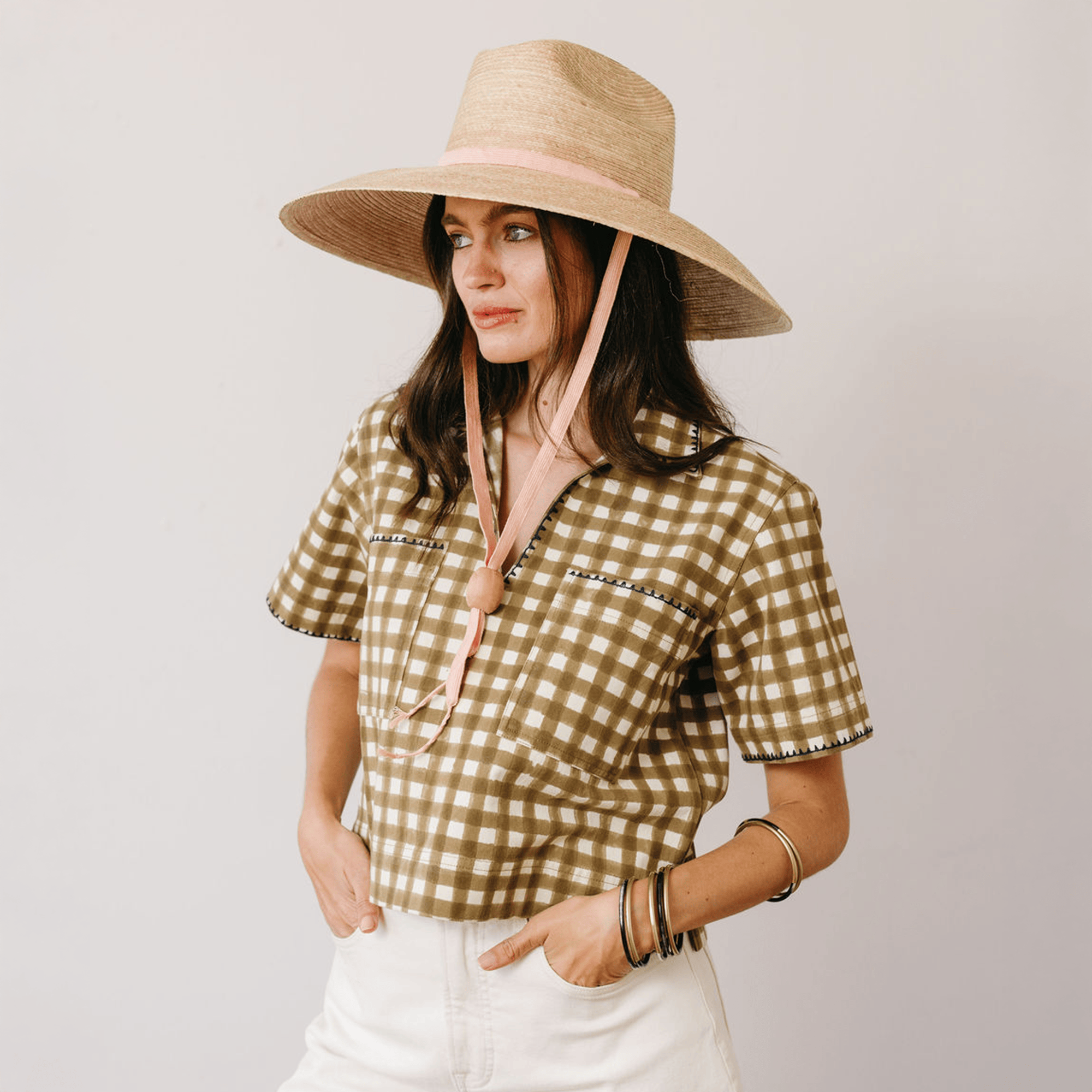 A classic palm hat with a functional refresh. The Natural Pool Hat features a structured crown, a wide 5" brim, and added grommets designed for our removable hat straps (sold separately). Handwoven in Guatemala from natural palm, it’s lightweight, breathable, and made for sunny days ahead.