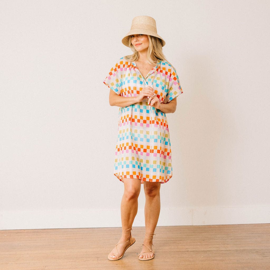 A breezy layer made for beach days and beyond. The Cove Cover-Up Dress features an easy, relaxed silhouette with fluttery short sleeves and a notched neckline with tie detailing. Designed to slip on and go, this lightweight beach cover-up is the perfect companion for poolside lounging, tropical vacations, or sunny weekends.