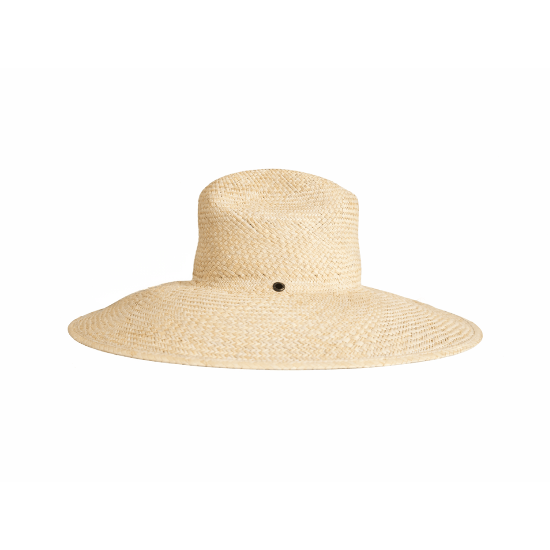 The Breezy Pool Hat features a structured crown, wide 5" brim, and discreet grommets for pairing with our removable hat straps (sold separately). Made from a lighter-colored palm sourced from Honduras and handwoven in Guatemala, it’s ultra-breathable and designed for all-day sun.
