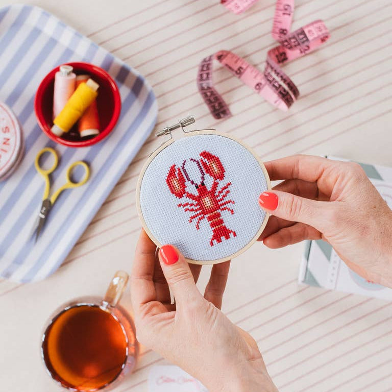 This Lobster Cross Stitch Kit is a fun, beginner-friendly project perfect for ocean lovers and nautical décor fans. Featuring a bright red lobster design stitched in a 4" (11cm) wooden hoop, it’s a quick, satisfying craft with coastal charm.