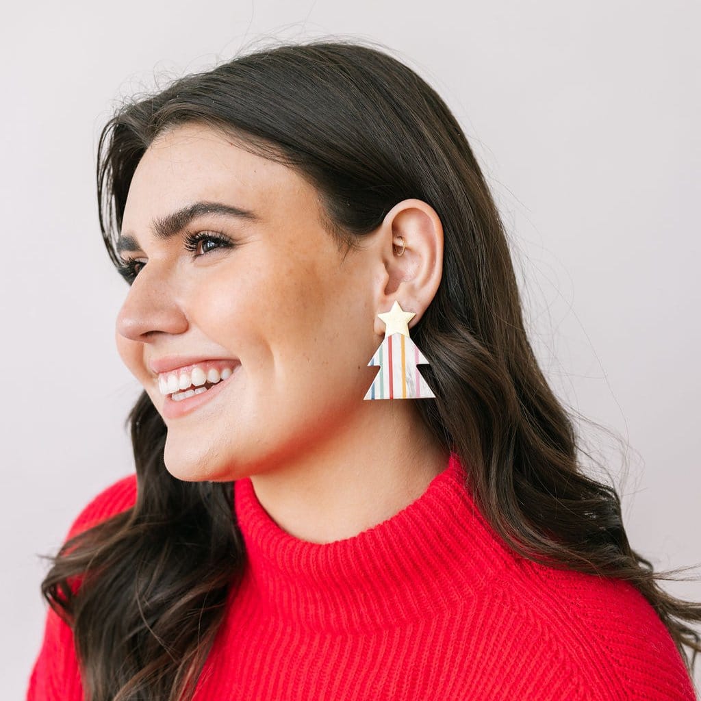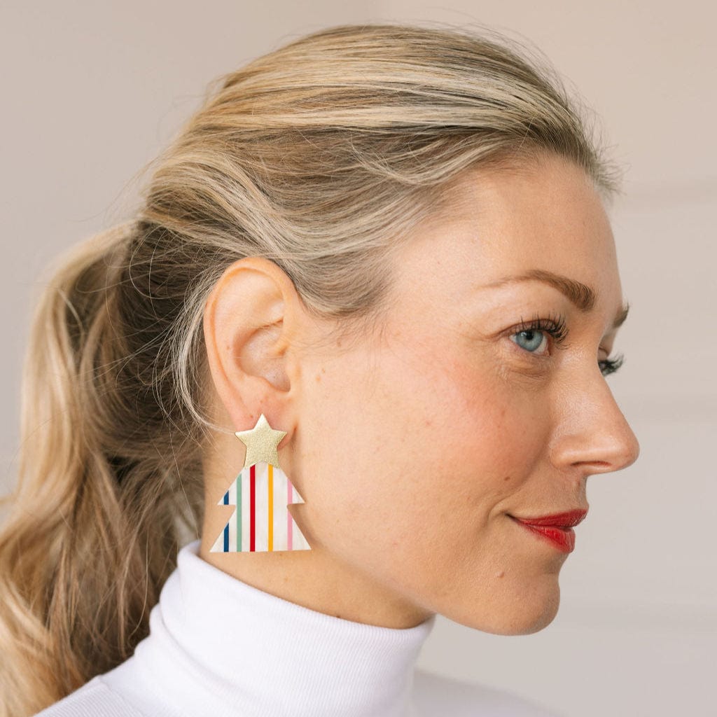 We love a good colorful stripe! The milky white buffalo horn mixed with colorful stripes is such a fun play on a Christmas Tree! These conversation starters are sure to dazzle at your next Holiday Party!