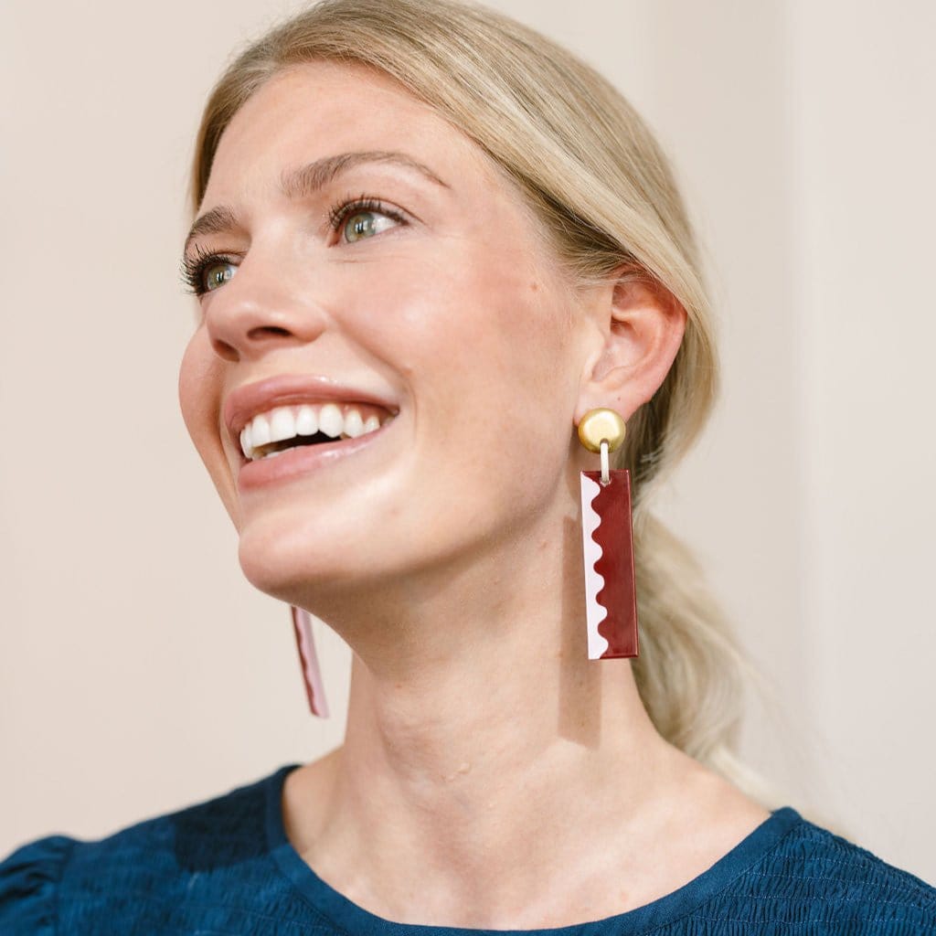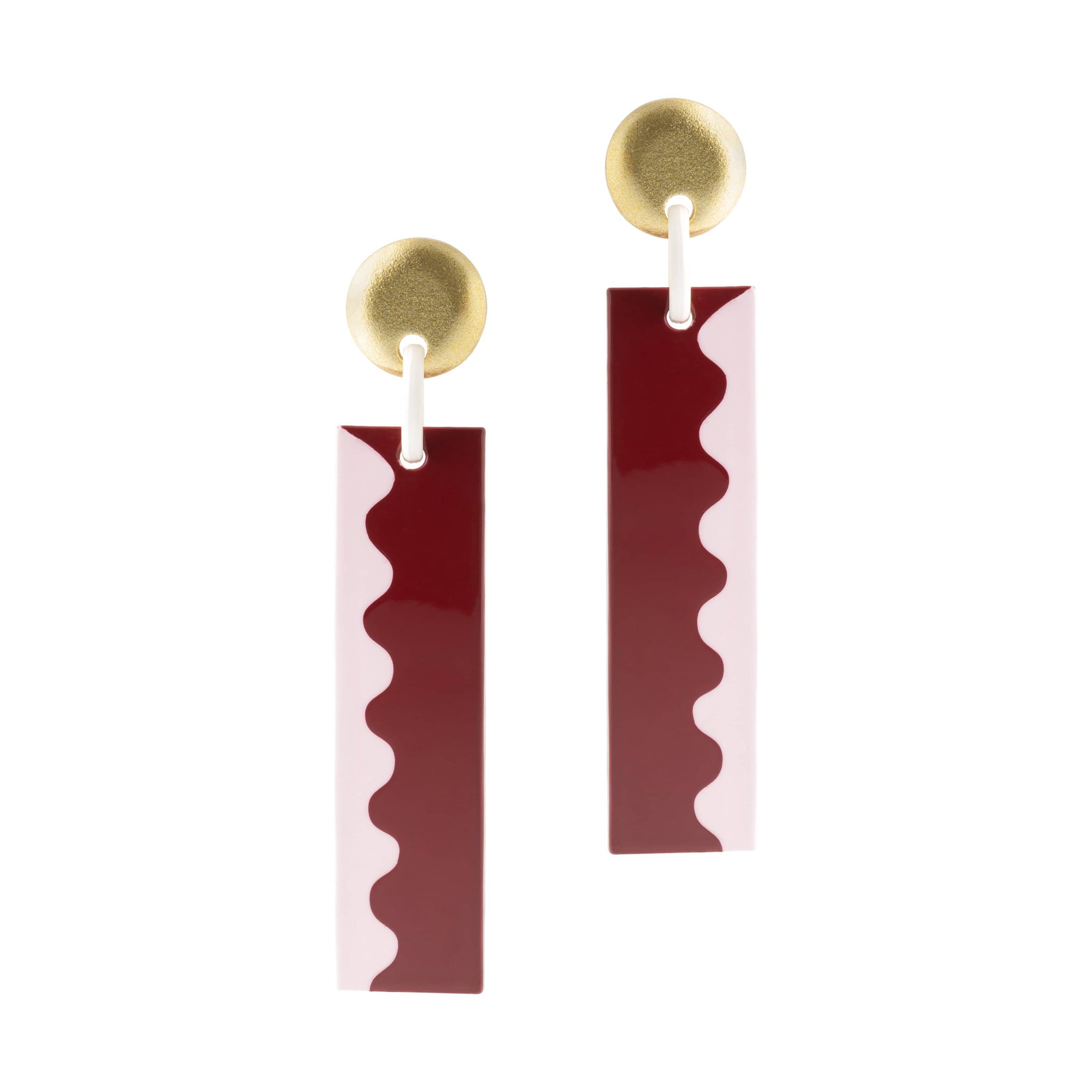 Make a bold statement with the Nicvatole Rectangle Earrings. These rectangles feature a striking half-pink, half-burgundy design, finished with an elegant gold stud for a modern, chic look.