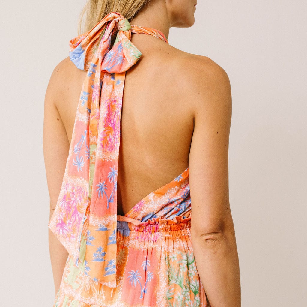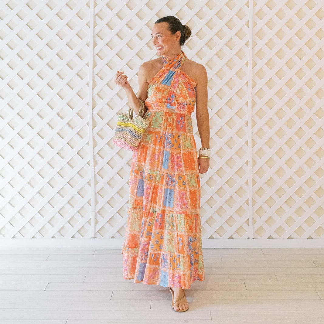 The ultimate vacation-ready maxi dress. The Capri Dress features a flattering halter neckline, smocked waist, and full-tiered skirt for a breezy, feminine fit. With its flowing silhouette and bold back-tie detail, this easy pull-on style is perfect for dressing up or down—whether you're headed to dinner by the sea or strolling through sunny streets.