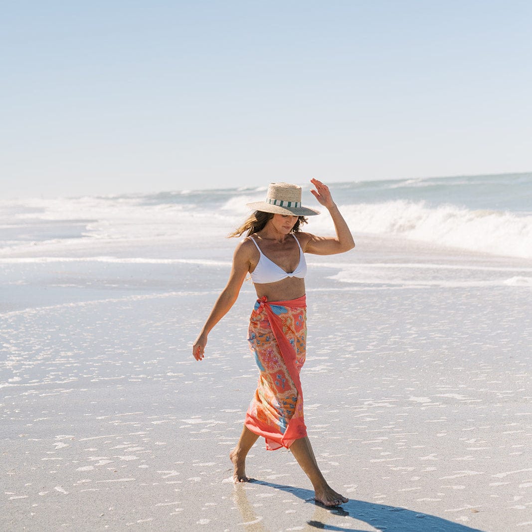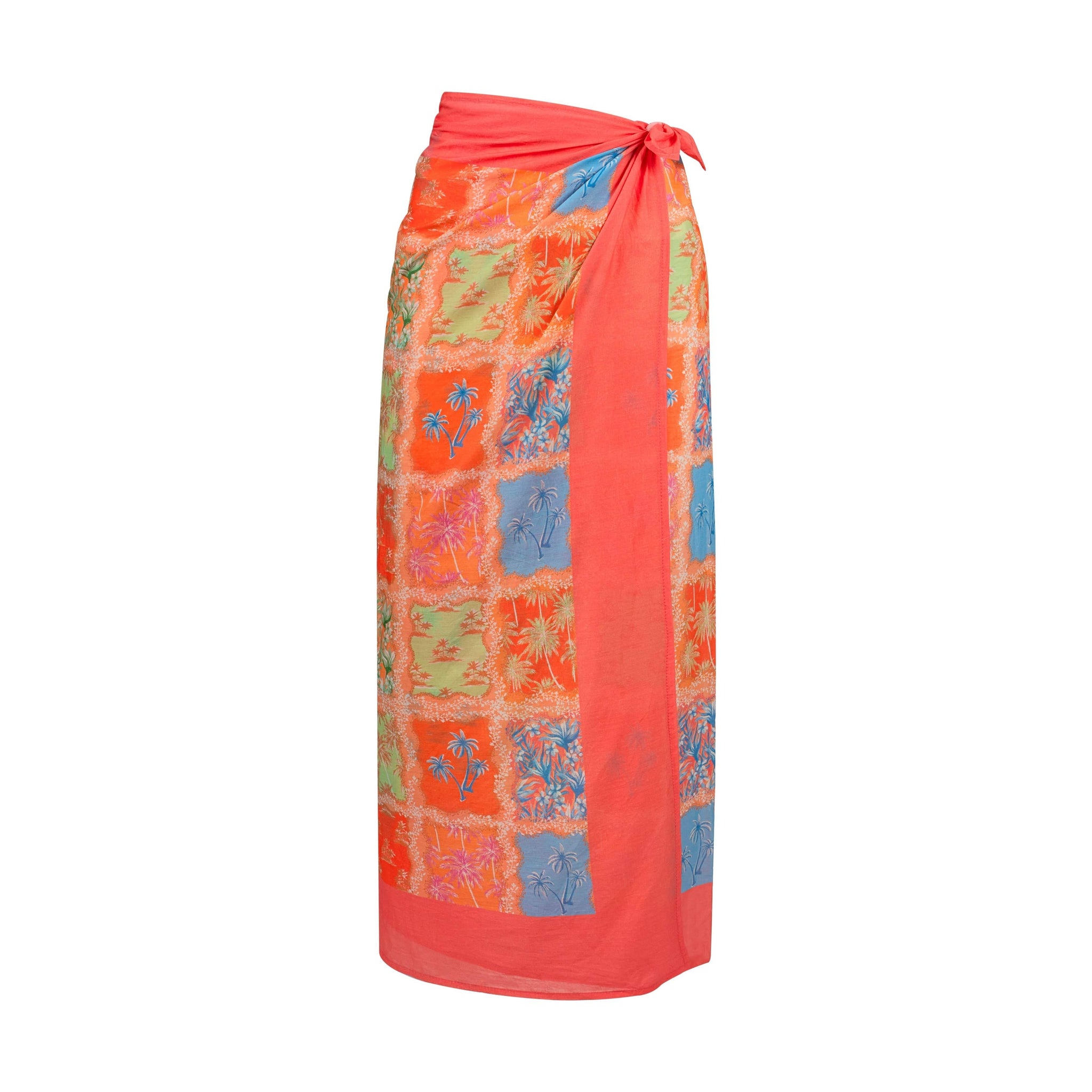 The Patchwork Palm Sarong, made from cotton voile, is a versatile beach cover-up that can be worn as a skirt, dress, or scarf. Stay stylish and comfortable with this easy-to-pack summer essential.