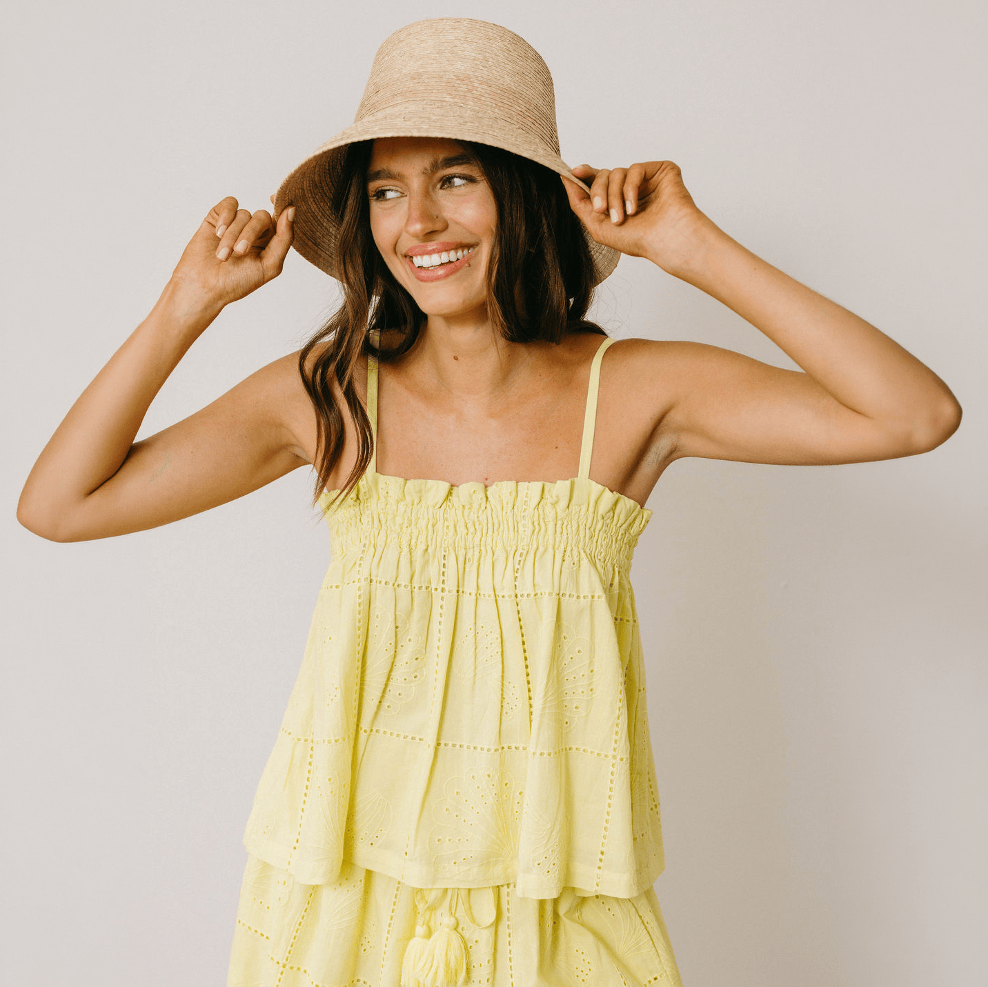 The Daphne Top features a flowy, swingy silhouette with adjustable shoulder straps and an elasticized ruched bodice for a flattering, flexible fit. Lightweight and easy to pair with everything from shorts to maxi skirts, this vacation-ready top will be on repeat all season long.