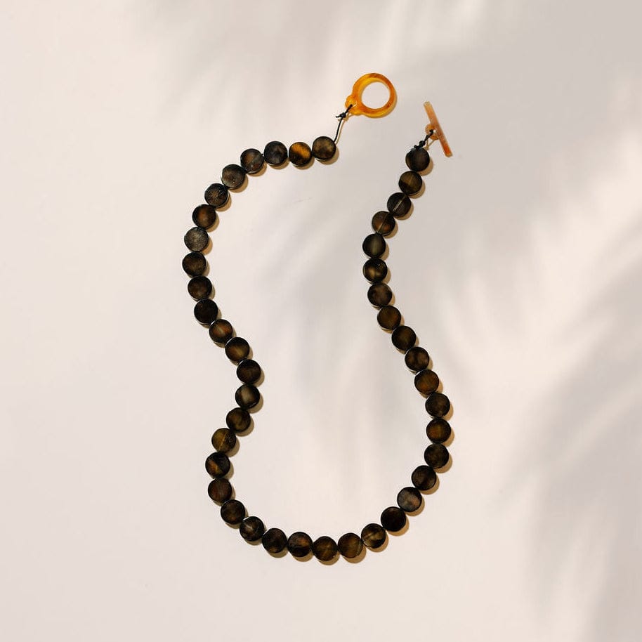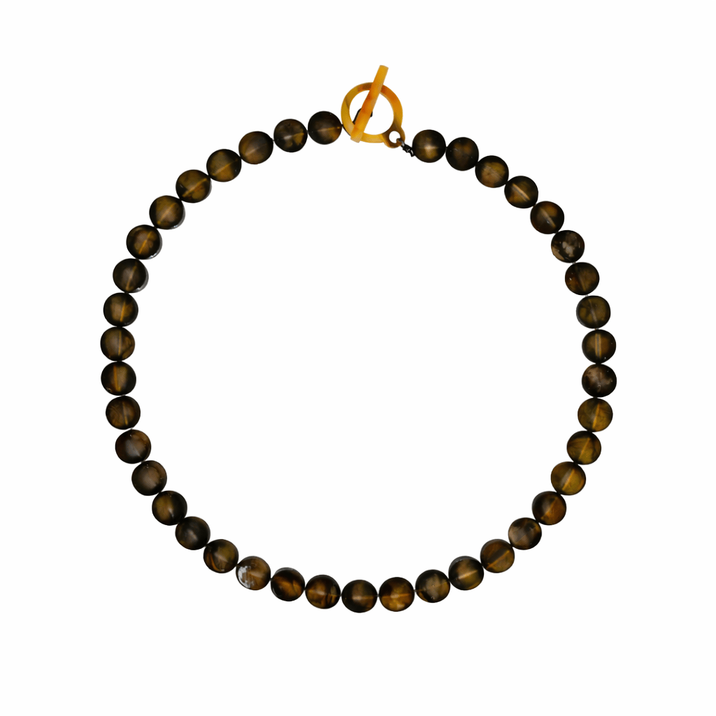 Light, airy, and effortlessly chic, the Smoky Quartz Necklace features translucent horn beads in rich, earthy smoky brown tones that catch the light beautifully. Wear it solo for a subtle statement or customize it with your favorite charm. An easy, versatile piece designed to elevate everyday looks with a relaxed, vacation-ready feel.