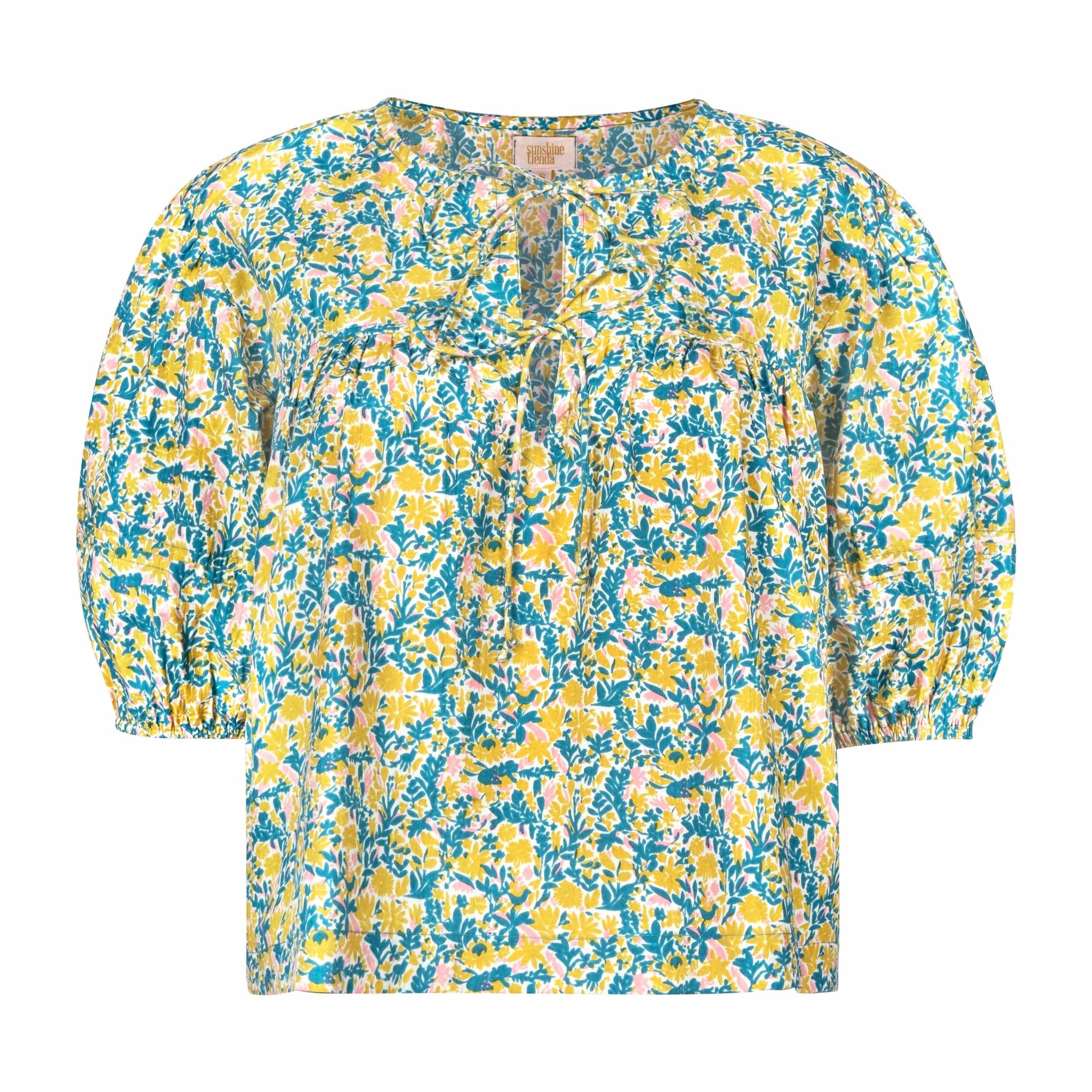 The Paradise Floral Mira Top is going to be your go-to top. The fit is perfect with a blousy body and the perfect puff sleeve. It bursts with vibrant yellow and teal florals, adding a cheerful touch to any outfit. Its relaxed fit and tie-front neckline make it an effortlessly stylish choice for sunny adventures.
