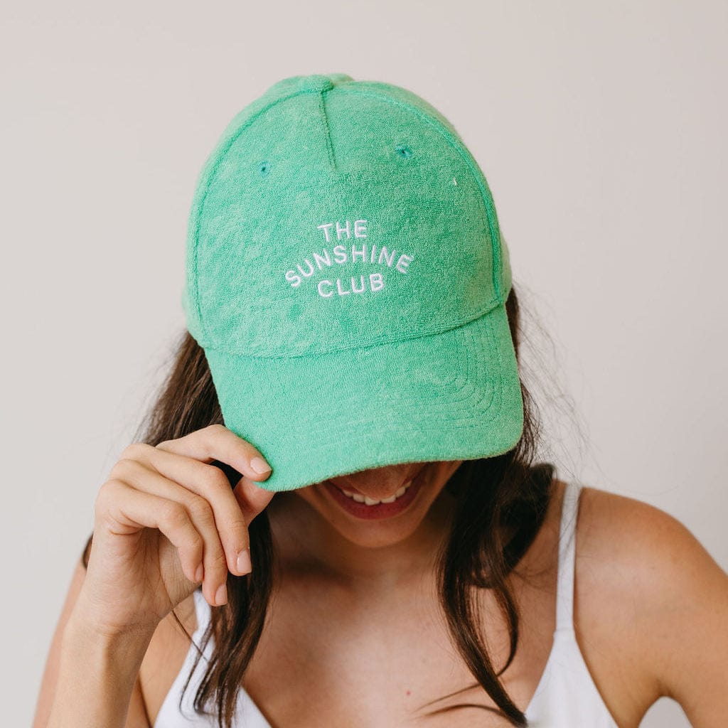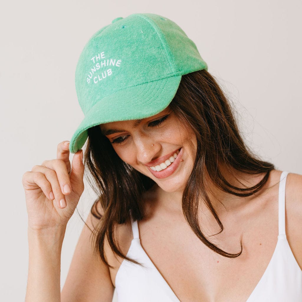 Bold, playful, and made for sunshine-filled days. Our Lawn Green Club Terry Trucker Hat is crafted from soft, towel-like terry fabric in a vibrant lawn green hue and finished with The Sunshine Club embroidery for a cheerful, feel-good statement. Designed in a classic trucker silhouette with an adjustable back, it’s the perfect throw-on for beach mornings, pool afternoons, and everything in between.