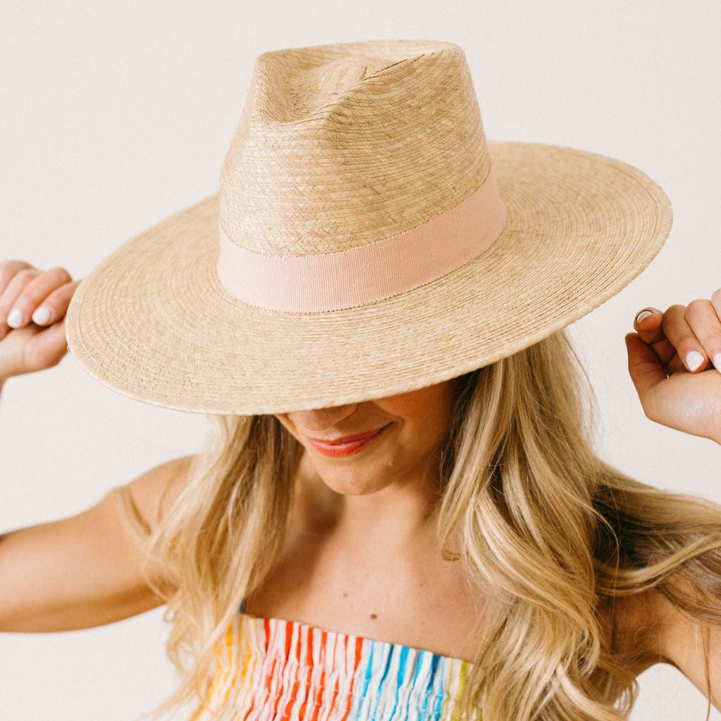 The Maya Palm Hat features a blush cotton band and is a part of our sustainable, fair trade hat collection and graded at the highest UPF rating.
